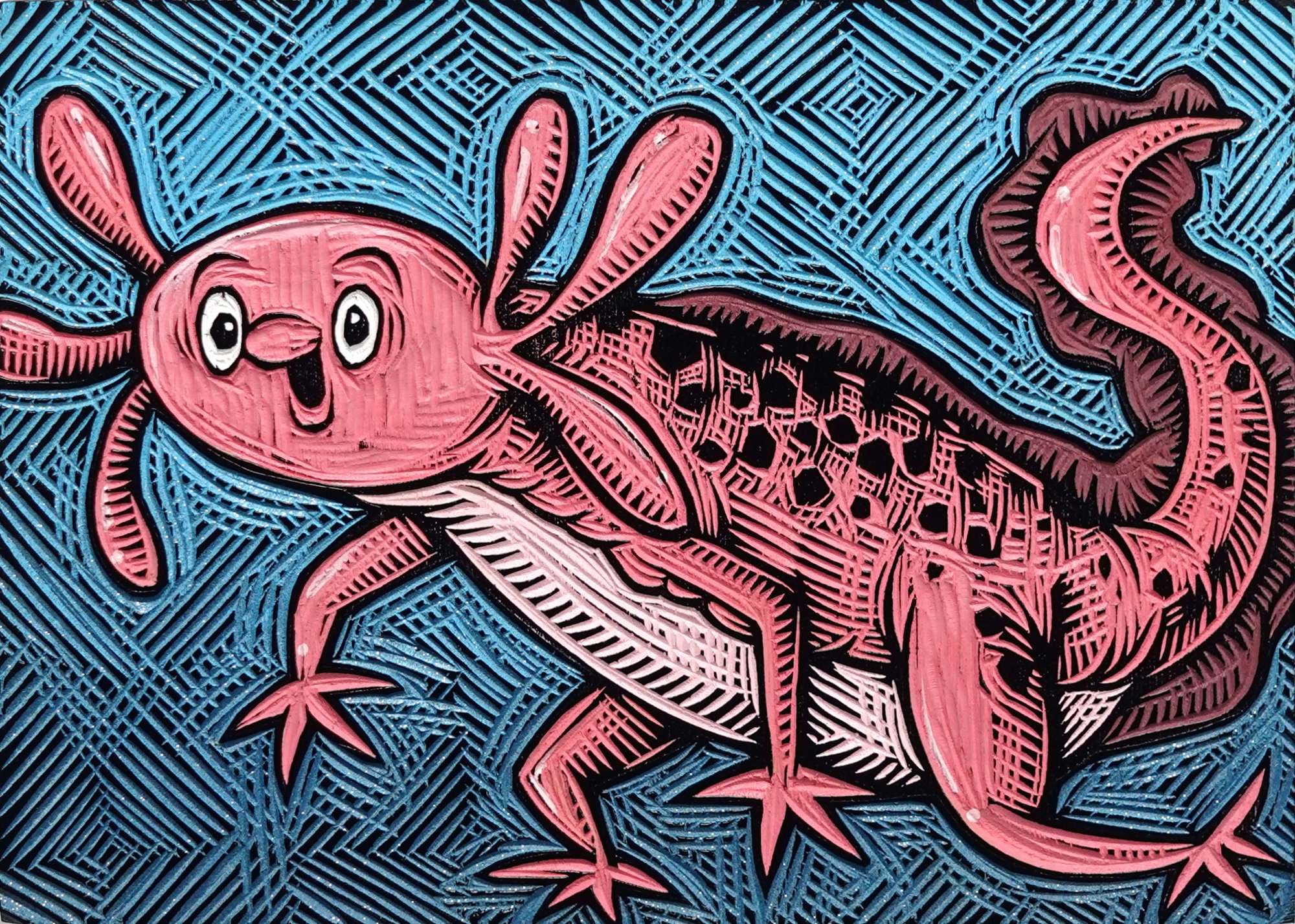 This is a one of a kind hand carved and painted woodcut. Carved out of a cradled panel, this piece is equipped with a sawtooth hanger on the back ready for your wall!