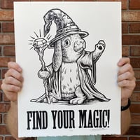 This is a one color woodcut, hand- printed off of a hand-carved piece of birch and hand-set type. This print is 14"x18" in size. Each print is signed and numbered.