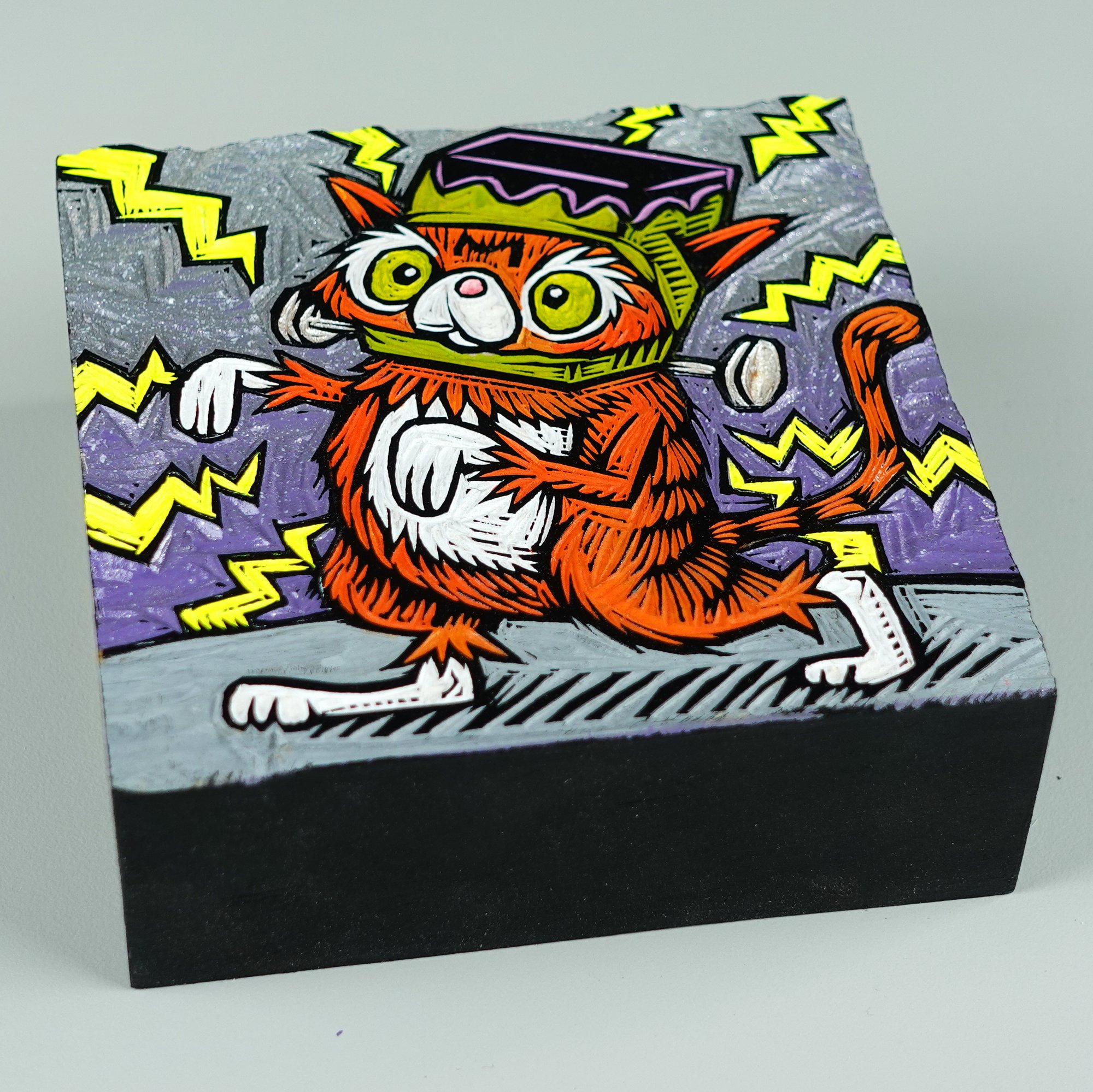Frankencat Carved and Painted Panel