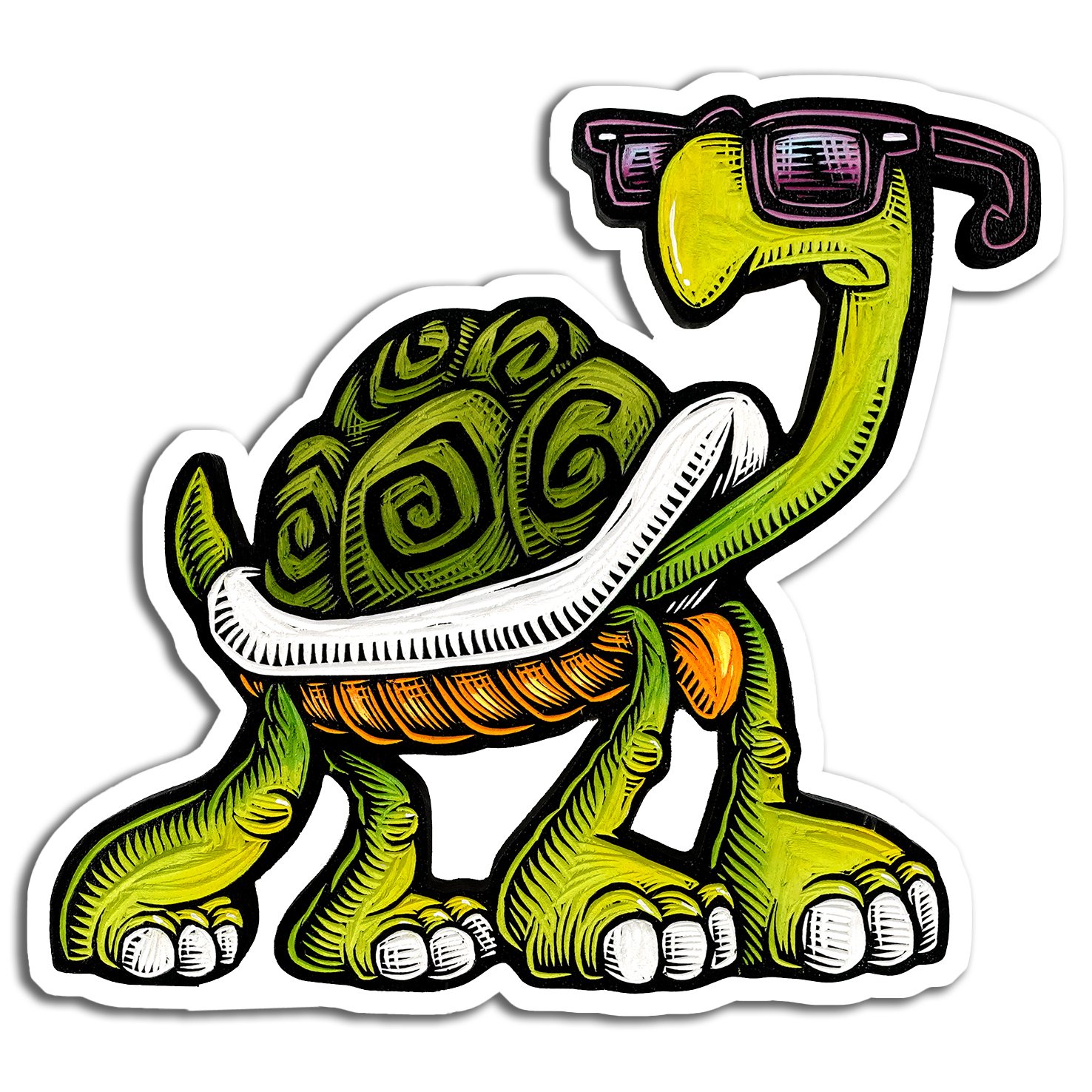 This is a limited edition vinyl sticker based off an original woodcarving by artist Chris Neuenschwander. This high quality sticker is suitable for both indoor and outdoor use.